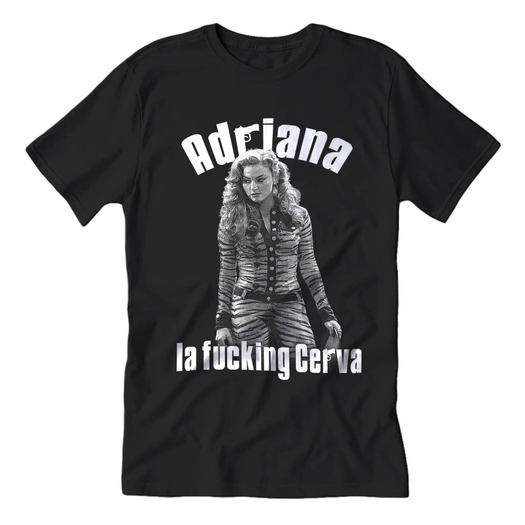 From the hostess stand at Vesuvio's to the back office of the Crazy Horse, Adriana La Cerva was more than just Christopher's girlfriend—she was the heart of the show. The Adriana La F--king Cerva T-Shirt pays tribute to the character who defined early 2000s Jersey style and demanded respect in a world run by wise guys.